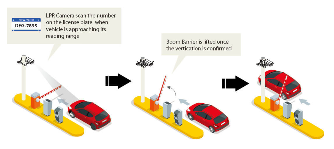 LPR technology is an application of computer video image recognition technology in license plate identification area. Its operation starts when the vehicle is located at the entrance of the parking lot, the LPR Camera will scan on the license plate character, and its recognition technology will identify the license plate number, color and other information. If the number on the license plate is valid, the car park barrier will lift for access, otherwise, no access will be allowed.